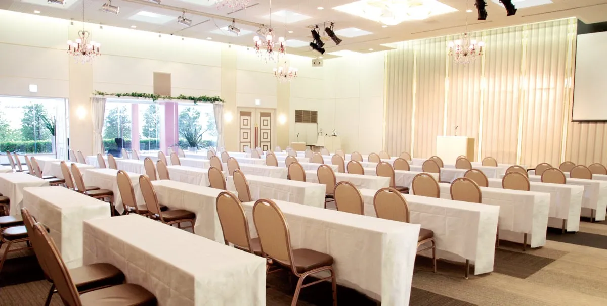 | ㎡ | 坪 | 正餐(円卓) | 立食 | スクール | シアター | |