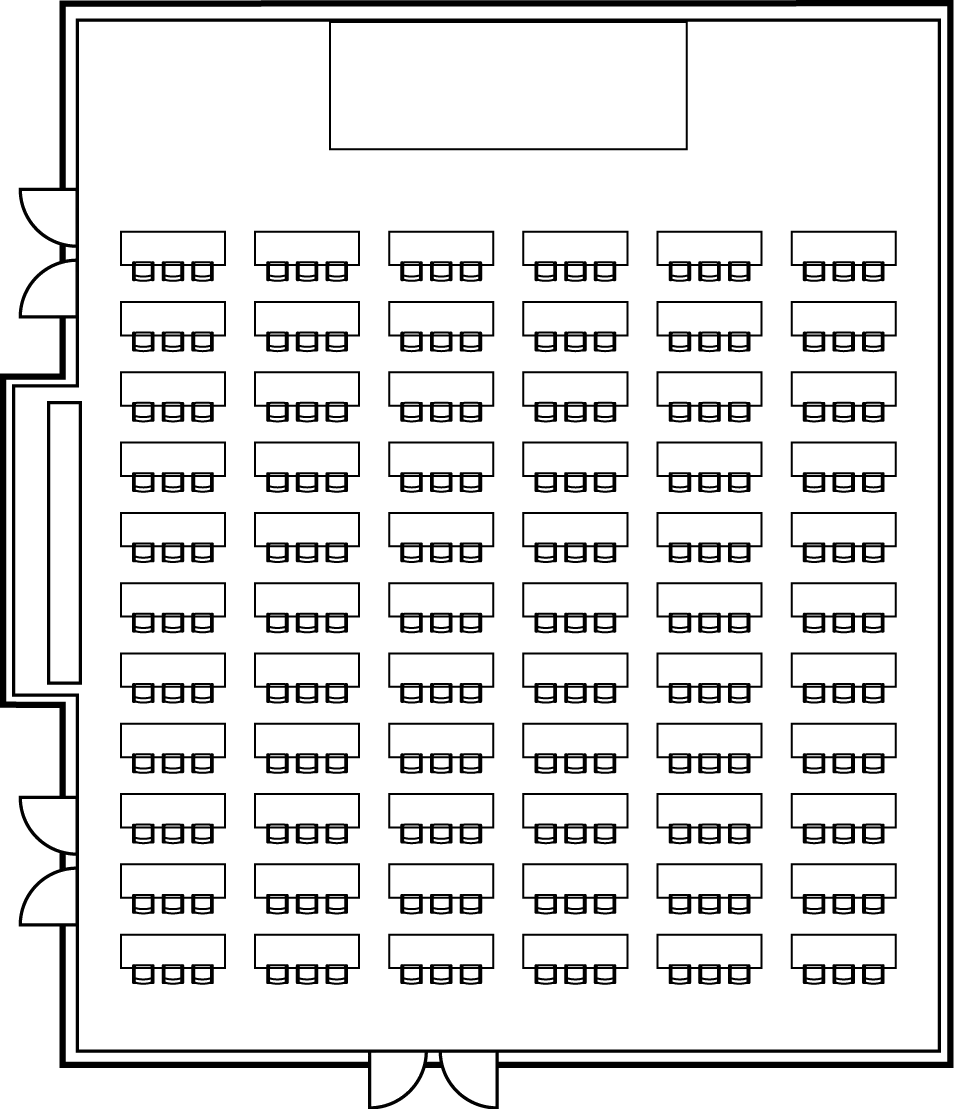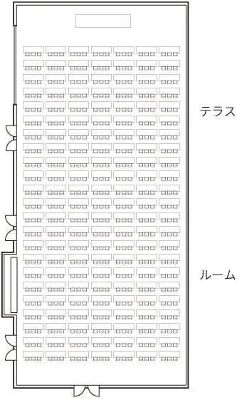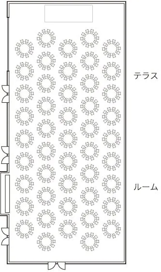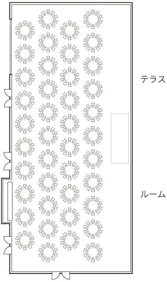 | ㎡ | 坪 | 正餐(円卓) | 立食 | スクール | シアター | |