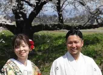 ウェディング今年も馬渡の川沿いの桜並木で、春のロケーションフォトウェディング