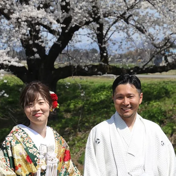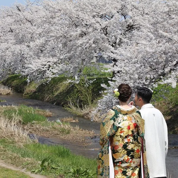 今年も馬渡の川沿いの桜並木で、春のロケーションフォトウェディング