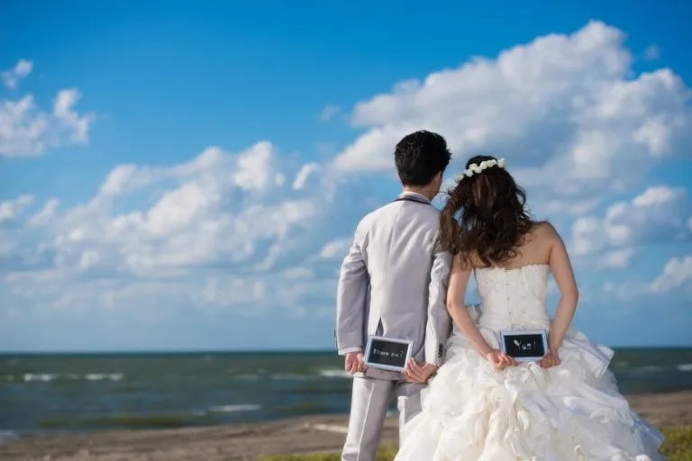 夕日をバックに撮影したり、小物を使って色々なポーズで楽しんでも良いですね