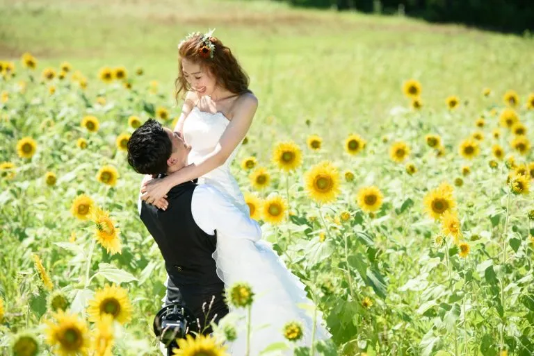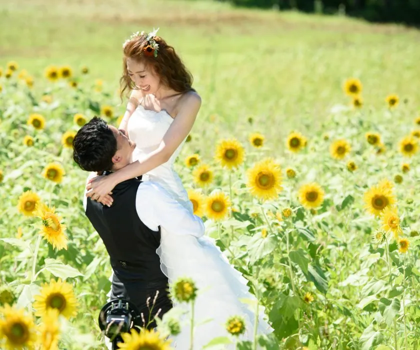 100万本が咲き誇るひまわり畑での撮影は素敵なウェディングフォトが撮れますよ