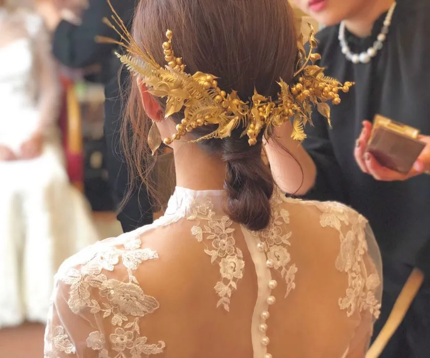 おしゃれ花嫁さんはウェディングドレスや和装にもゴールド小物を合わせる方も